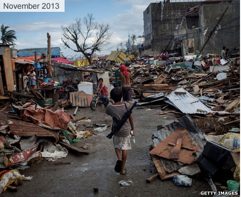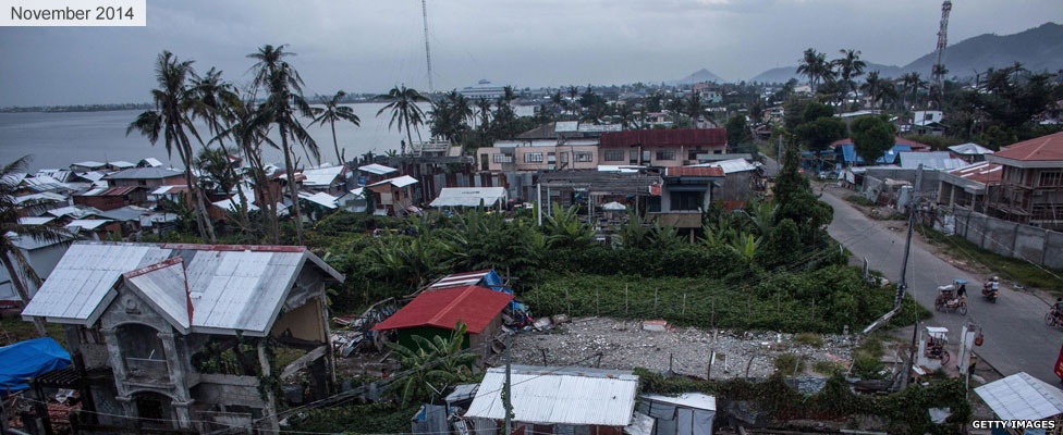 | Khu vực bị siêu bão Haiyan tàn phá năm 2013 là vùng đất nghèo khó nhất của Philippines. Người dân ở đây sống chủ yếu dựa vào nông nghiệp và đánh bắt cá. Những ngôi nhà tồi tàn khiến người dân không có chỗ ẩn náu siêu bão. Một năm sau siêu bão, khu vực huyện Magallanes, Tacloban đã gần như không còn dấu hiệu nào của sự đổ nát. |