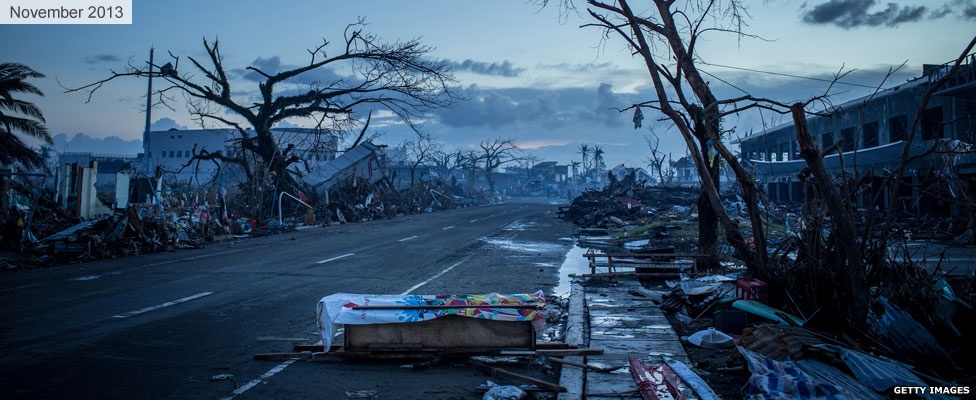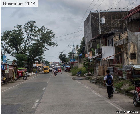 | Con đường dẫn tới sân bay ở Tacloban đã tấp nập trở lại. Bức ảnh chụp tháng 11/2013 cho thấy con đường như cảnh quay trong bộ phim về ngày tận thế nhưng dấu vết thảm họa gần như biến mất một năm sau đó. |