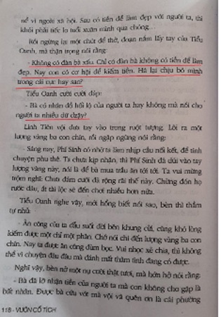 Linh Tiên vội mời Tiểu Oanh vào nhà. Khêu ngọn đèn lên, thì thấy một thiên hương quá chời là đẹp… (…)