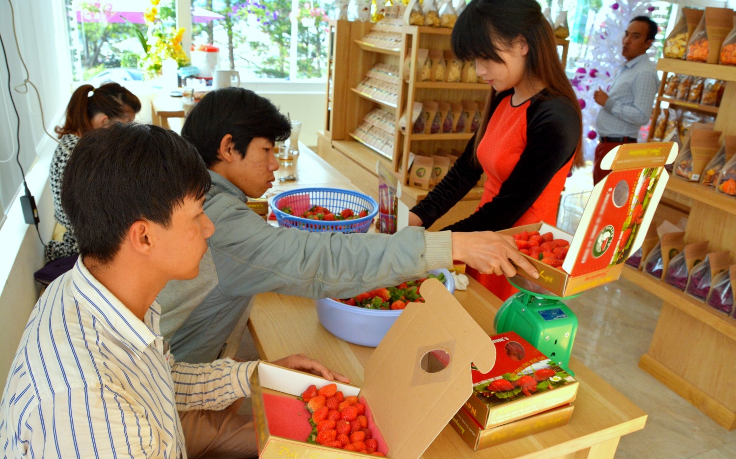 Trang trại dâu này còn cung cấp hàng cho một số siêu thị, cửa hàng ở Đà Lạt, TP HCM. Mỗi năm, trừ mọi chi phí đầu vào, anh Linh thu về khoảng 150 triệu đồng tiền lãi cho 1 sào. Chủ vườn cũng khá cởi mở giới thiệu khách về quy trình trồng, chăm sóc, thu hoạch, đóng gói dâu tây một cách khoa học để đảm bảo có được sản phẩm tươi ngon, sạch nhất cung cấp cho người tiêu dùng.