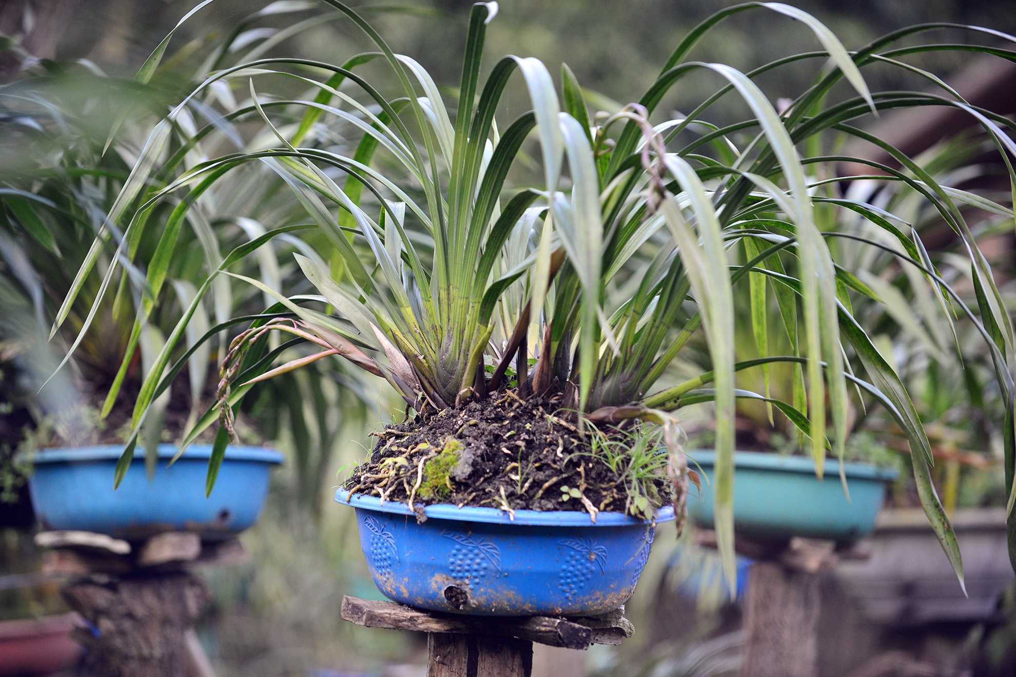 | Nhà hoa Lê Thương cất những chậu địa lan lớn cẩn thận để chuyển về Hà Nội. |