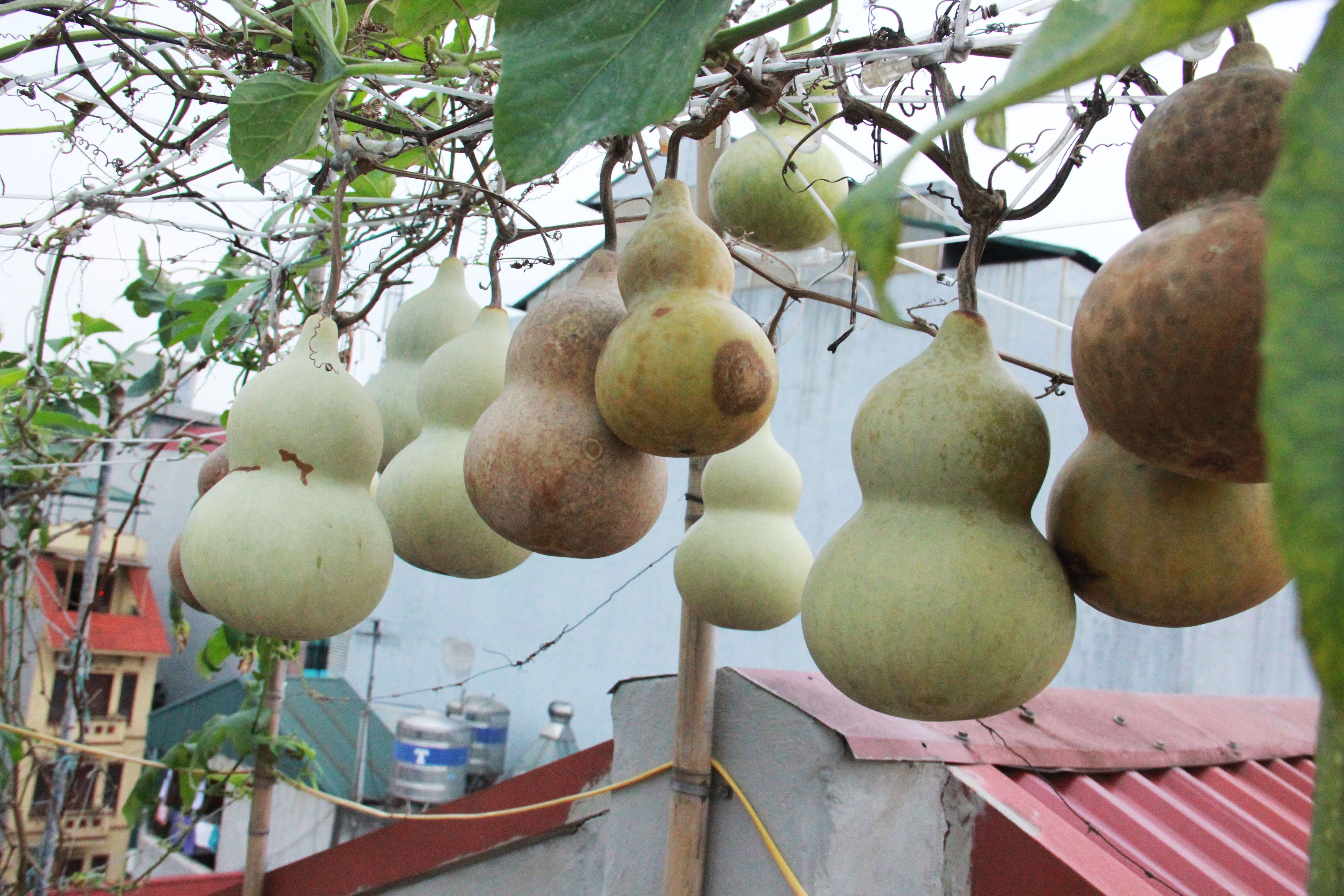Cũng theo ông Thắng, thường một gốc bầu hồ lô sẽ cho khoảng 30 – 40 quả. Nếu chăm sóc tốt, chúng có thể cho ra 50 quả/năm. Hiện vườn trên tầng thường của ông chỉ có 3 gốc hồ lô, cho thu được gần 100 quả.