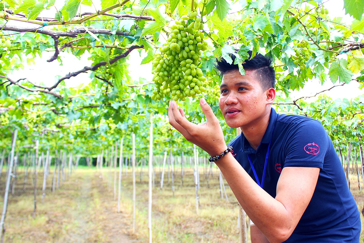 Ông chủ trang trại nho Ba Mọi chia sẻ: "Tôi bắt đầu mở cửa cho khách tham quan vườn nho 2 năm nay. Lượng khách đang ngày một tăng, trung bình mỗi ngày có từ 2 -3 đoàn ghé thăm vườn, nhiều khách lẻ trong và ngoài tỉnh cũng tìm đến học tập kinh nghiệm trồng loại quả này".