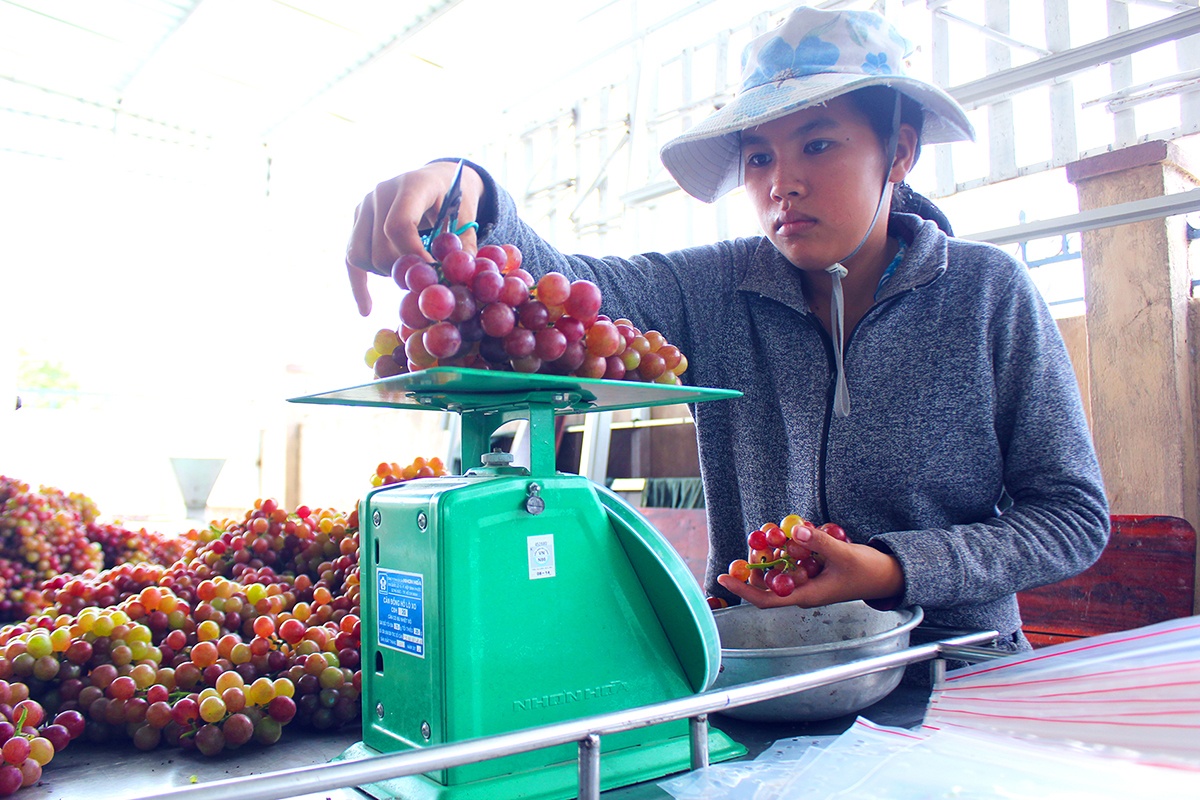Giá nho tại vườn hiện chỉ ở mức 25.000 đồng/kg.