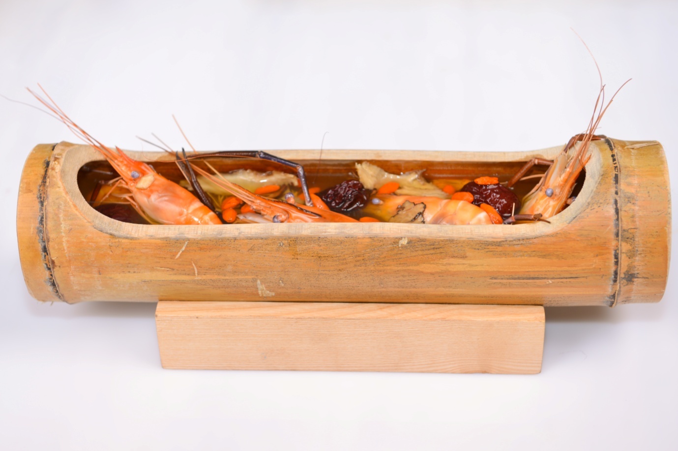 Tôm là thực phẩm giàu protein,cung cấp vitamin B12 và sắt. Tôm không những giàu dinh dưỡng mà còn là vị thuốc chữa bệnh được tin dùng. Thực đơn nhà hàng sưu tầm gần 30 món tôm được chế biến với nhiều hình thức hấp dẫn như sốt, hấp, nướng, rang, chiên, xào và lẩu...