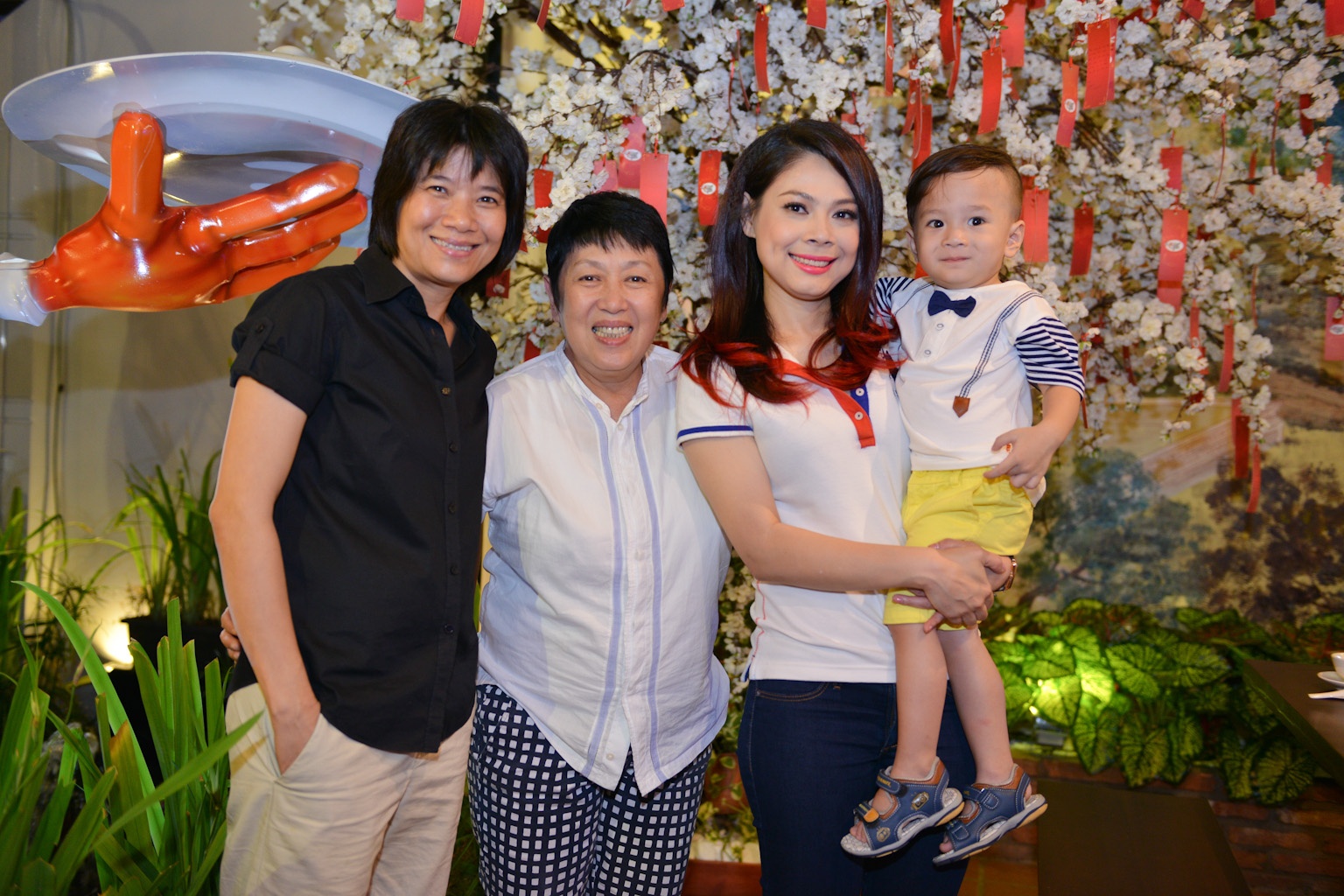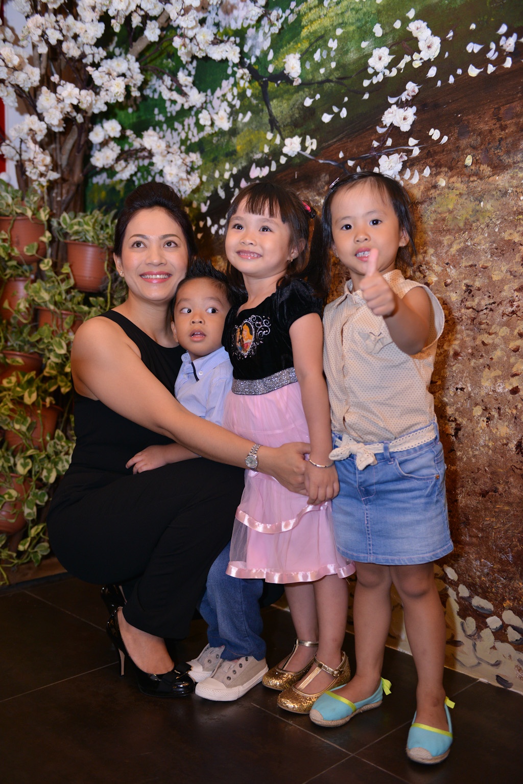 | Các thiên thần nhỏ chụp hình với cây ước nguyện tại nhà hàng Vương Quốc Tôm. |