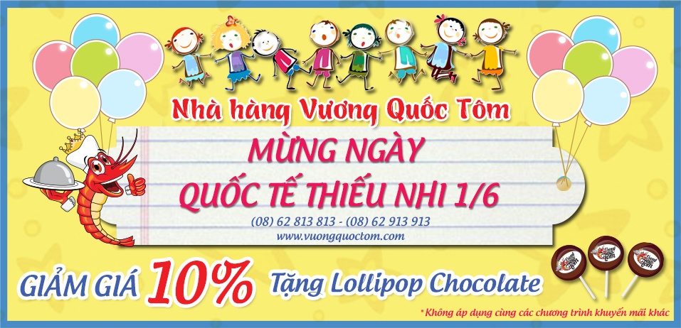 Với các món ăn thơm ngon cùng mức giá ưu đãi đặc biệt, Vương Quốc Tôm mong muốn được mang lại một bữa ăn thật thịnh soạn, đầy đủ dưỡng chất và đem lại niềm vui bất ngờ cho các bé trong dịp Quốc tế Thiếu nhi.