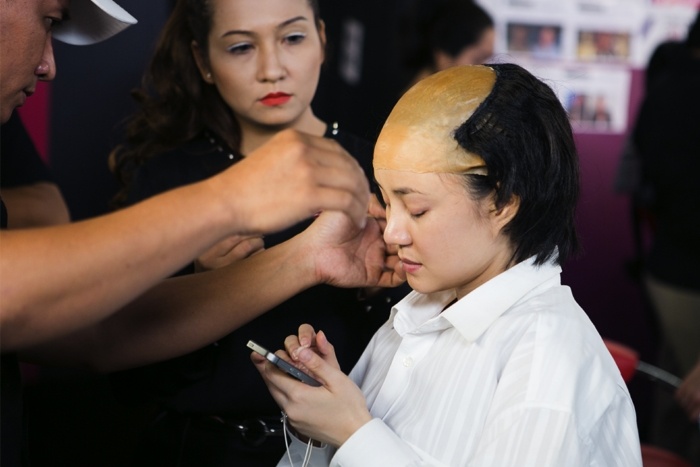 | Mi-A có mặt khá sớm để chuẩn bị cho phần hoá trang của mình. |