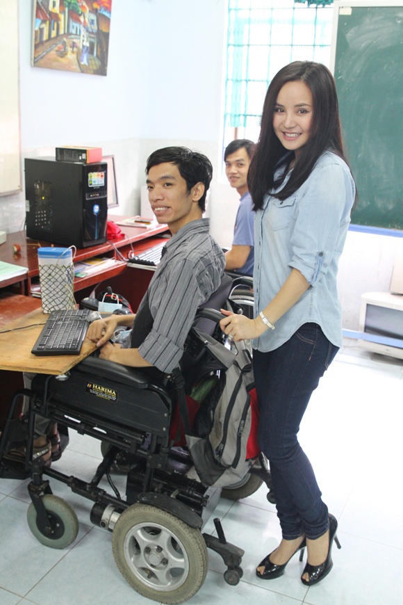 Vy Oanh thăm người khuyết tật trước buổi tiệc sinh nhật sớm