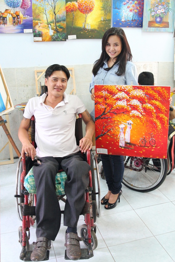 ... Cuối cùng, cô đã mua rất nhiều tranh của các họa sĩ nghiệp dư gặp hoàn cảnh khó khăn để treo trong nhà và tặng bạn bè. Bức tranh đặc biệt nhất mà Vy Oanh chọn được là tác phẩm đầu tay của chàng trai trẻ vẽ tranh bằng miệng. Nữ ca sĩ khẳng định: "Họ thực sự rất đáng để ngưỡng mộ - cả những người kém may mắn và cả những người may mắn đang ở đó làm công tác tình nguyện viên".