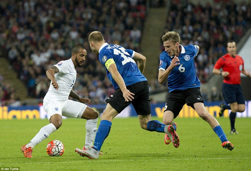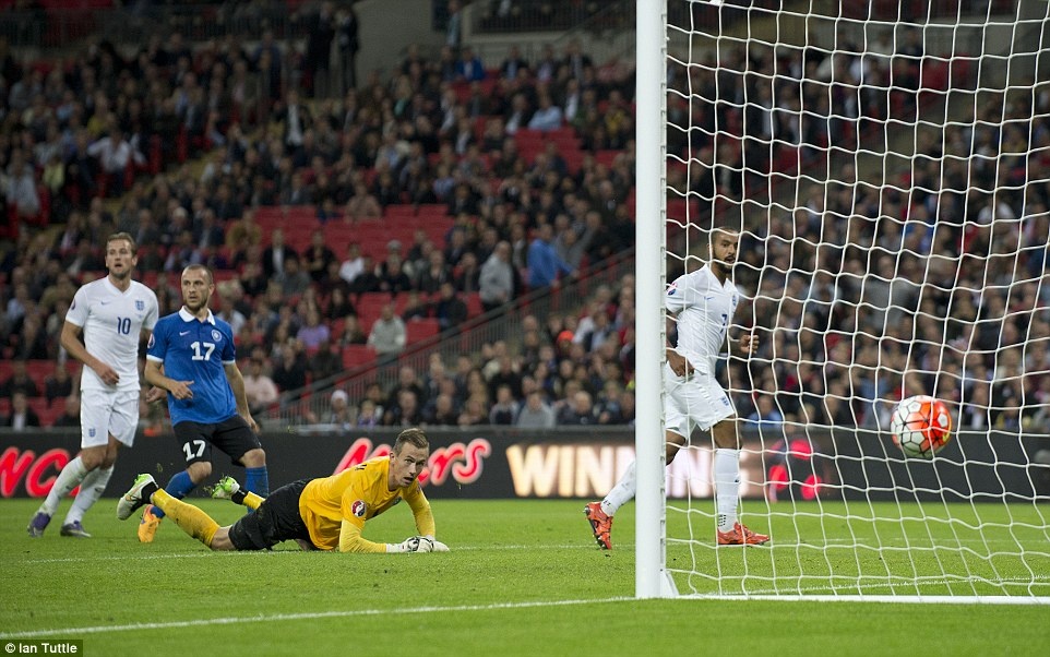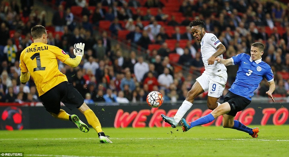 Từ tình huống phá bóng bất thành của cầu thủ Estonia, Jamie Vardy băng xuống và chuyền ngang cho Sterling đệm lòng cận thành ghi bàn cho ĐT Anh. |