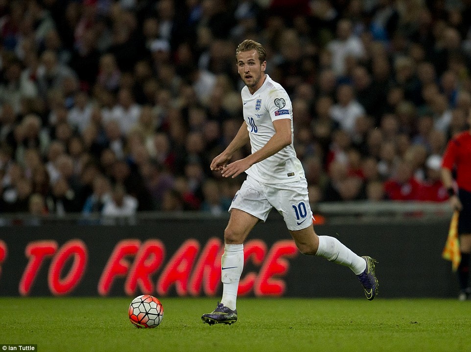| Tiền đạo Harry Kane lần đầu có mặt trong đội hình xuất phát của tuyển Anh ở vòng loại EURO 2016. Cầu thủ thuộc biên chế Tottenham khoác áo số 10. |