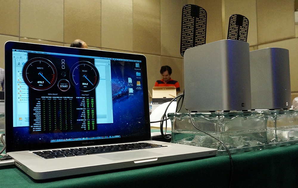 | Thử nghiệm cùng với Macbook cho thấy ổ cứng WD My Book Thunderbolt Duo khi được ghép đôi đạt tốc độ đọc/ghi dữ liệu lên đến 500 MB/giây. |