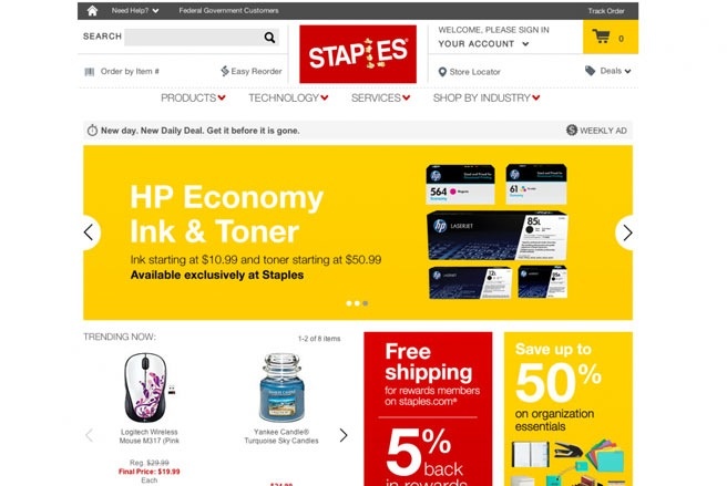 | Website Staples hiện nay. |