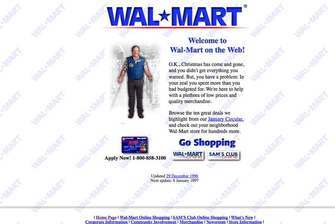 | Website Walmart ngày 31/12/1996. |