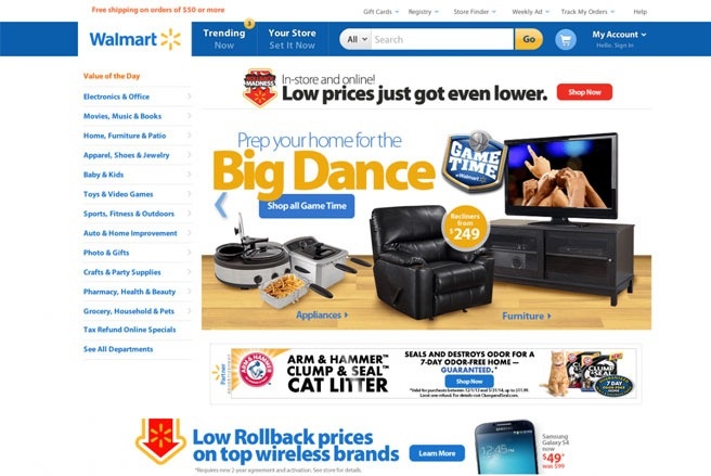 | Website Walmart hiện nay. |