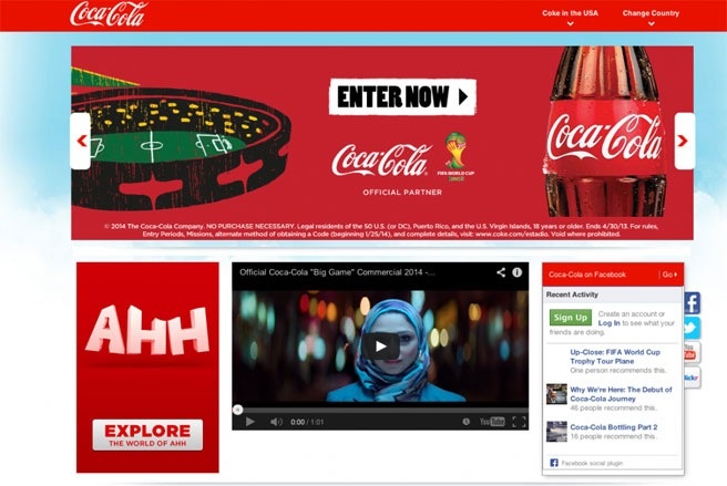 | Website Coca-Cola hiện nay. |