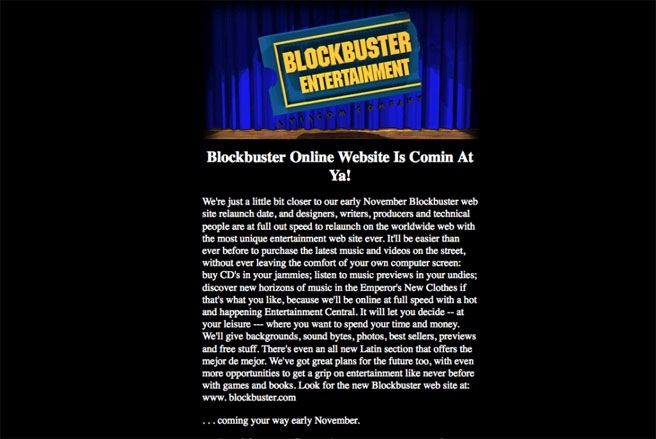 | Website Blockbuster ngày 19/10/1996. |