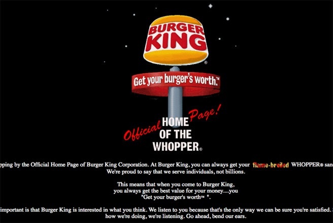 | Website Burger King ngày 26/12/1996. |