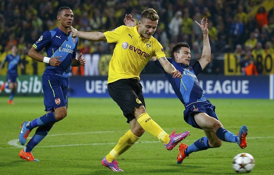 | Sau rất nhiều cơ hội bị bỏ lỡ đáng tiếc, Dortmund cũng tìm được bàn thắng mở tỷ số ở phút 45. Tân binh Ciro Immobile có pha solo tuyệt vời từ phần sân nhà, trước khi tung cú sút chéo góc hạ gục Szczesny. |