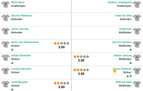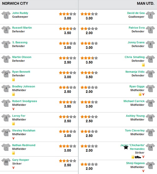 Tuy nhiên, ở trận gặp Norwich, CĐV MU đã tỏ ra khá lo lắng khi MU không có sự phục vụ của hai chân sút trụ cột Van Persie và Rooney do dính chấn thương. Điều đó buộc HLV David Moyes phải có sự điều chỉnh đội hình xuất phát với Chicharito đá chính trên hàng công. Đưa ra sân đội hình không phải mạnh nhất, Quỷ đỏ đã gặp rất nhiều khó khăn trong 45 phút đầu tiên.