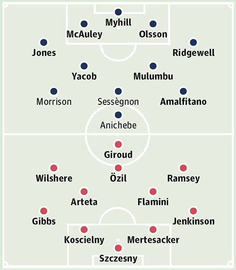 Đội hình dự kiến ra sân của West Brom và Arsenal. |