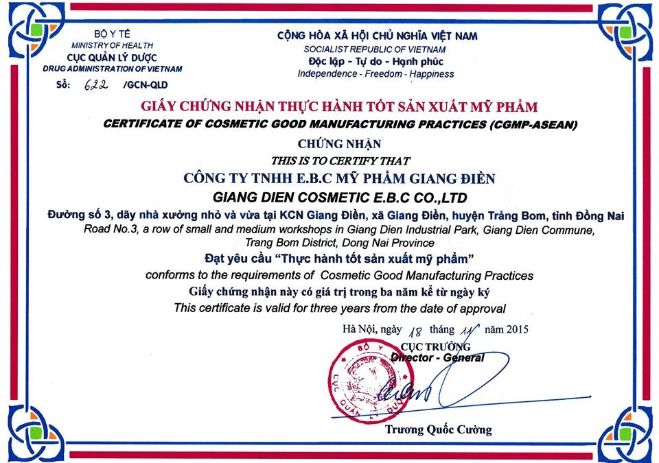 Tháng 8/2015, công ty chính thức được cấp giấy chứng nhận nhà máy đóng gói sản phẩm đạt tiêu chuẩn chất lượng quốc tế GMP - ASEAN. Đến đầu năm nay, quá trình đóng gói được khởi động lại. Sử dụng nguyên liệu chiết xuất thiên nhiên nhập khẩu, sản phẩm này đảm bảo chất lượng và hiệu quả đúng như những ngày đầu ra mắt.