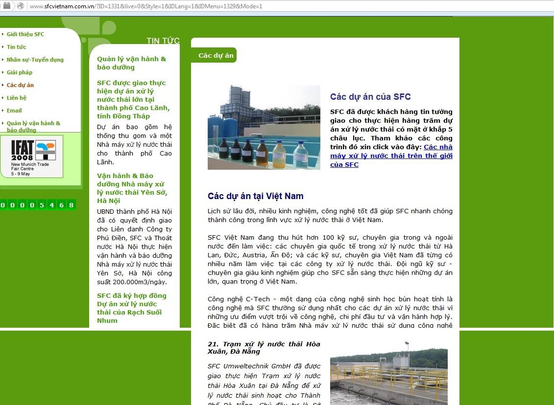 | Dự án trạm xử lý nước thải Hòa Xuân, Đà Nẵng được SFC Việt Nam giới thiệu trên website của công ty. |