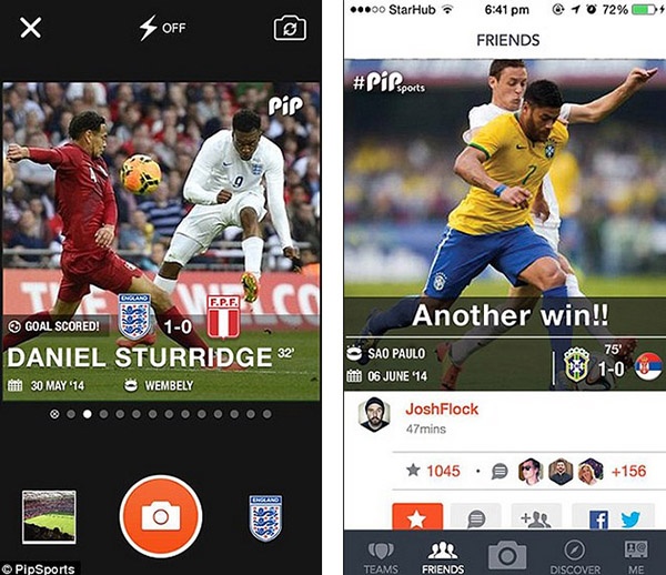 Công ty PiPSport đã ra mắt một ứng dụng mệnh danh là "Instagram dành cho World Cup". Ứng dụng này cho phép người hâm mộ chụp những bức ảnh thể thao sống động với các dữ liệu bổ trợ ở phía dưới. Nếu bạn đã dùng qua ứng dụng Instagram Thời tiết thì bạn sẽ thấy PiPSport cũng có cách thức tương tự. Khi người hâm mộ chụp một tấm ảnh cầu thủ trên sân, ứng dụng PiPSport sẽ ngay lập tức kết nối với máy chủ của Công ty Dữ liệu Thể thao Quốc tế Opta để lấy các dữ liệu như địa điểm thi đấu, tỷ số hiện tại, con số thống kê trận đấu, logo đội bóng... để gắn vào tấm ảnh. Người hâm mộ có quyền lựa chọn dữ liệu nào được hiển thị trên ảnh cũng như các "skin" (kiểu trang trí có sẵn) để tạo ra một tấm ảnh mang tính cá nhân. Sau khi chụp xong, người hâm mộ có thể chia sẻ ảnh trên Facebook hoặc chia sẻ trực tiếp trên hệ thống của PiPSport.