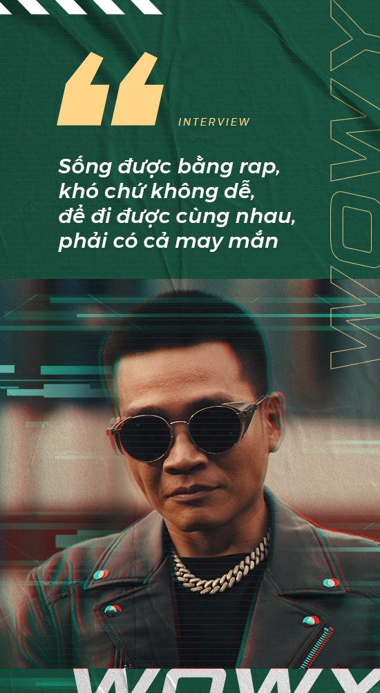 Thế nhưng thời ấy, rap bị xem như “đứa con ghẻ” và người làm rap cũng chẳng hơn bao nhiêu. Tôi nhận không ít ánh nhìn nghi ngại, lời chê bai từ người xung quanh khi theo đuổi đam mê. May mắn thay, cũng chính đam mê đó trở thành động lực giúp giải tỏa nỗi buồn, tiếp thêm niềm vui. Tôi mang tất cả đời sống, bất mãn lẫn hy vọng vào từng câu rap. Vì vậy, khán giả có thể thấy một phần con người Wowy trong đó.