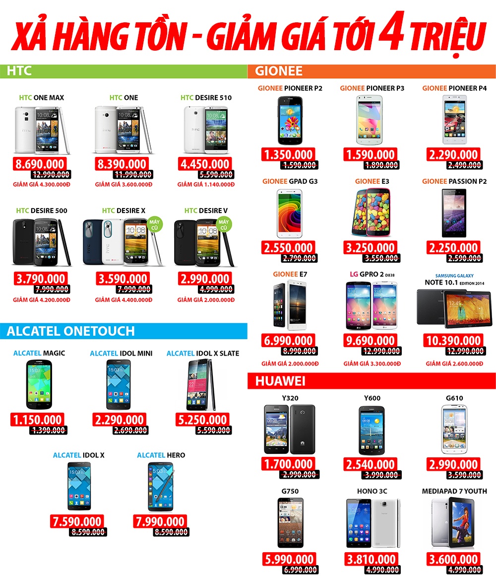 - HTC Desire X T329 dual sim giá sốc 3,59 triệu đồng (Giá cũ 7,99 triệu đồng) giảm giá 4,4 triệu đồng.