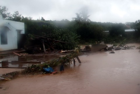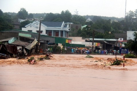 | Theo bà con, nước lũ về đột ngột nhanh và hung hãn đã quét qua khu vực các khối 3, 5, 6 thuộc thị trấn Eađrăng. Đứng trên nhà mình giờ chỉ còn lại nền đất, bà Dương Thị Lý ở khối 6 buồn bã cho biết, toàn bộ tài sản gồm tiền bạc, vật dụng giấy tờ đã bị nước cuốn trôi. |