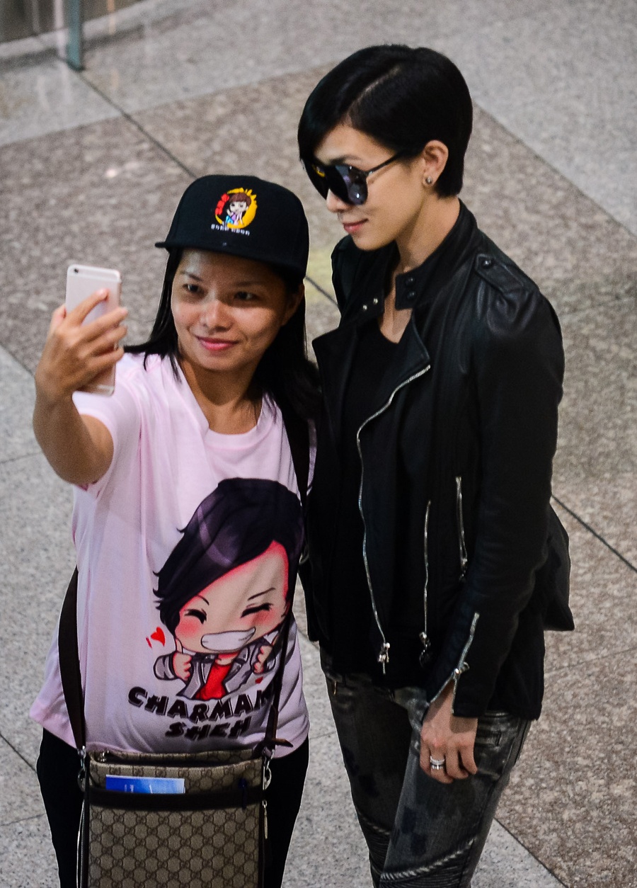 | Xa Thi Mạn tranh thủ chụp ảnh cùng người hâm mộ. |