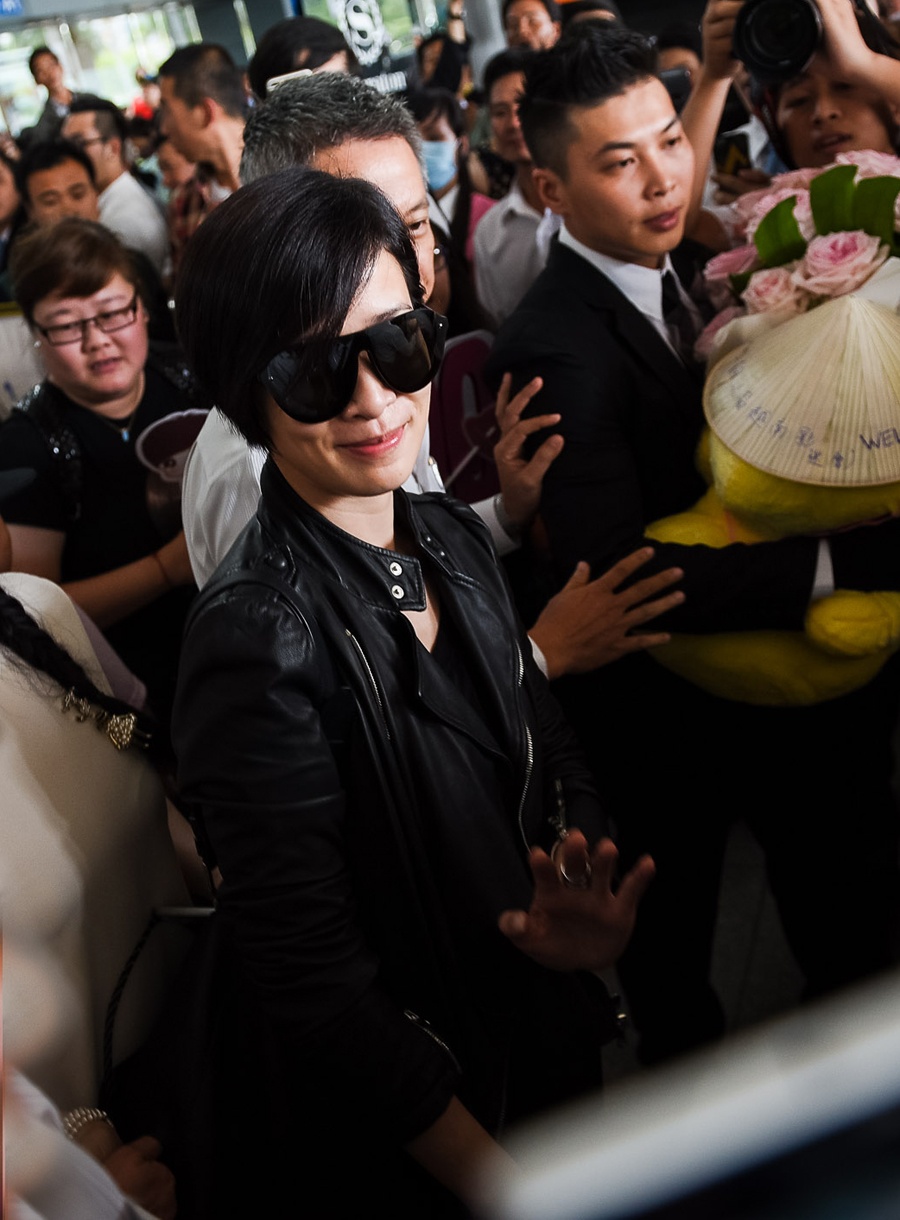 | Tại sân bay Tân Sơn Nhất, nữ diễn viên Hong Kong bị bao vây bởi hàng trăm người hâm mộ. Fan đã túc trực ở sân bay từ sáng sớm để chờ đợi khoảnh khắc trông thấy thần tượng ngoài đời. |