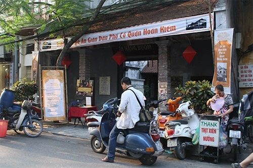 Chùa Vĩnh Trù ở Hàng Lược nằm ngay cạnh quán thịt chó, những lúc đông khách, người ngồi tràn cả sang cổng chùa