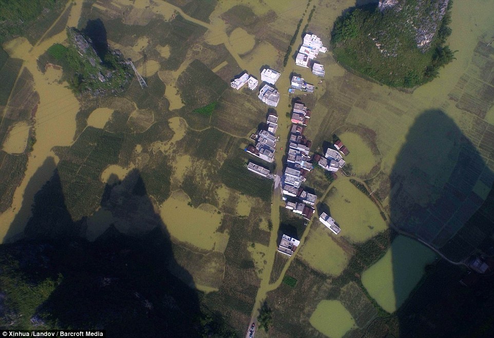 Theo tính toán của chính quyền địa phương, khoảng 789.000 người và 49.000 hecta hoa màu bị ảnh hưởng bởi thiên tai. Nhiều ngôi làng bị nước cô lập hoàn toàn với thế giới bên ngoài. Ảnh: Tân Hoa Xã |