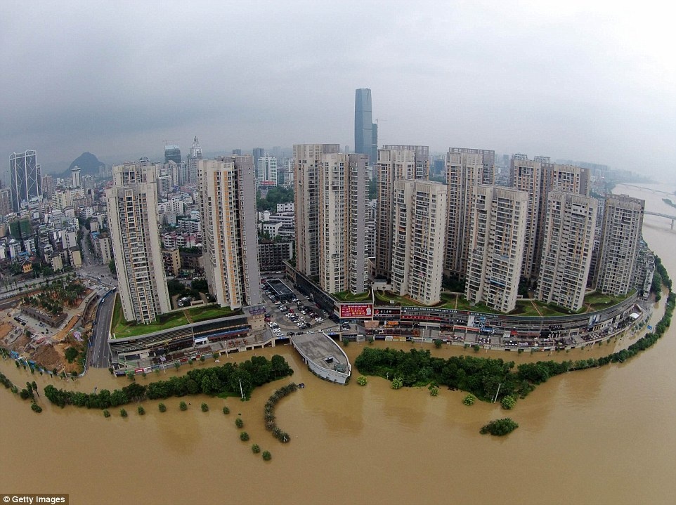 Mưa lũ gây ảnh hưởng tới 40 huyện và 10 thành phố ở tỉnh Quảng Tây, làm ít nhất 3 người thiệt mạng và 5 người mất tích. Ảnh: Tân Hoa Xã |