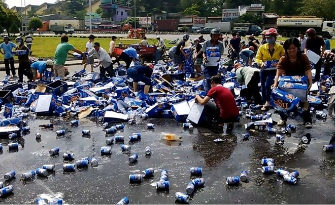 Trước đó, chiều ngày 4/12, chiếc xe tải chở hàng ngàn két bia Tiger do tài xế Hồ Kim Hậu (30 tuổi, quê Bình Định) điều khiển từ TP.HCM đi Bình Thuận. Khi vừa ôm cua vòng xoay Tam Hiệp thì bia trên thùng xe đổ xuống đường. Thấy bia bị văng khắp nơi, hàng trăm người đi đường và xung quanh hiện trường ập tới "hôi của". Nhiều người còn leo lên cả thùng xe để lấy bia.