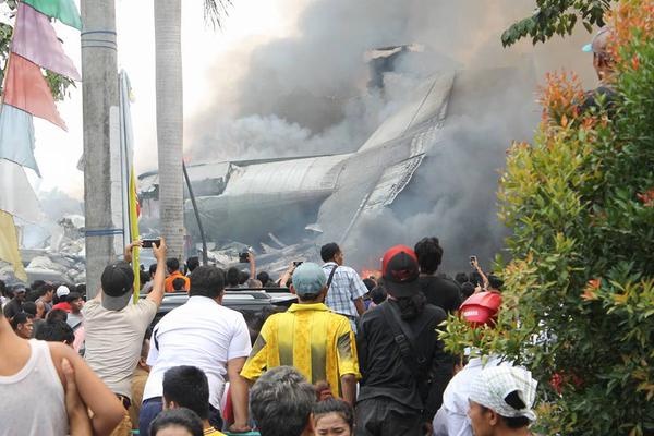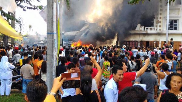 | Máy bay rơi tại Medan, thành phố đông dân thứ 3 của Indonesia sau thủ đô Jakarta và Surabaya. Ảnh: Twitter |