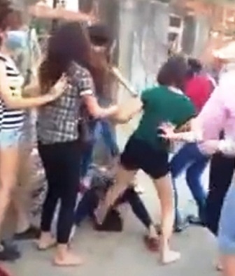 | Cảnh nhóm người hành hung dã man thiếu nữ. |