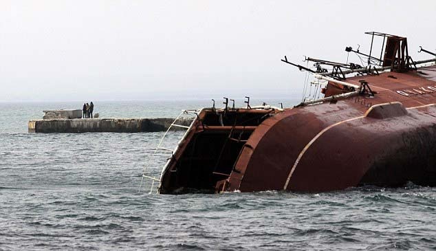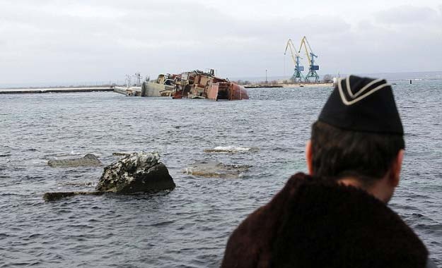 | Thời báo Los Angles của Mỹ dẫn lời Trung tá Alexei Mazepa, người phát ngôn Bộ Quốc phòng Ukraina, cho biết, thủy thủ Nga kéo tàu chống ngầm Ochakov khỏi bãi phế liệu hải quân và đánh chìm tàu để ngăn tàu Ukraina ra biển. Ảnh: AP. |