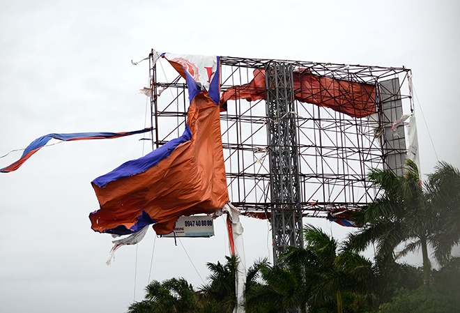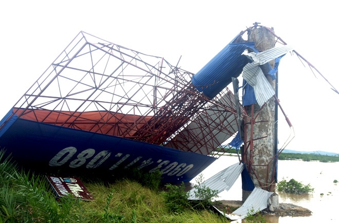 | Biển quảng cáo cỡ lớn ngoài trời có trụ bê tông cũng bị gãy đổ sập. |