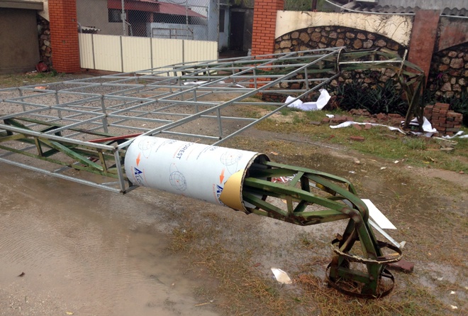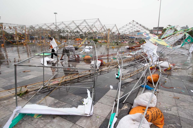 | Quang cảnh đổ nát tại khu hội chợ triển lãm tại Thái Bình sáng 11/11. |