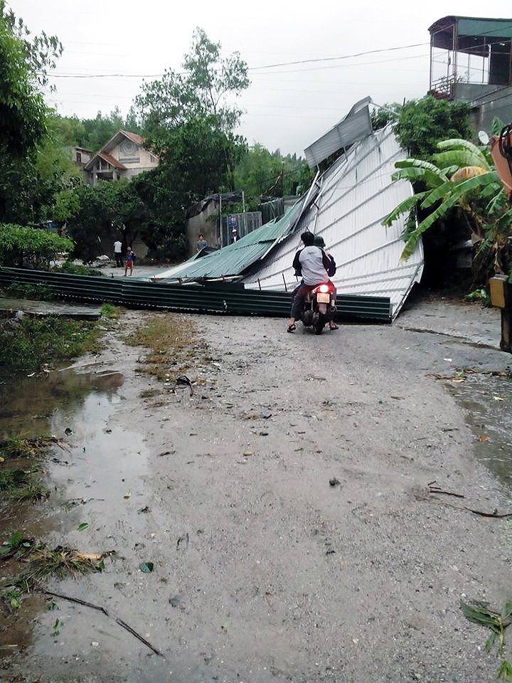 | Mái tôn cỡ lớn bay xuống cản đường đi lại |