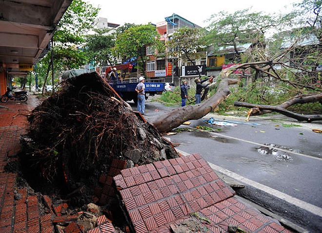| Một trong nhiều cây đổ tại thành phố Hạ Long (Quảng Ninh). |