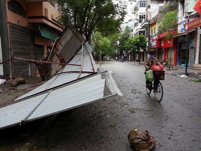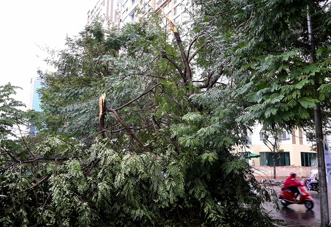 | Hà Nội cũng có hàng chục cây xanh bị đổ gãy. Ảnh chụp trên đường Hoàng Minh Giám. (Ảnh : Minh Hoàng) |