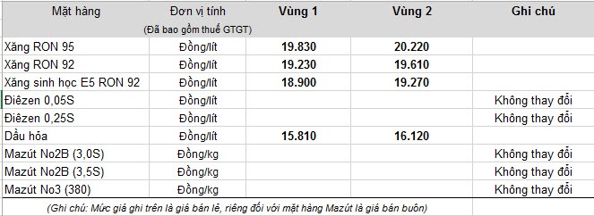 Theo thông tin từ Liên bộ Tài chính - Công Thương, giá xăng RON 92, khoáng, E5 tăng 1.950 đồng/lít, dầu hỏa giảm 260 đồng, diesel và mazut giữ nguyên. Như vậy, xăng RON 92 sẽ tăng từ 17.280 đồng lên 19.230 đồng, RON 95 và E5 từ 17.800 đồng lên 19.830 đồng.