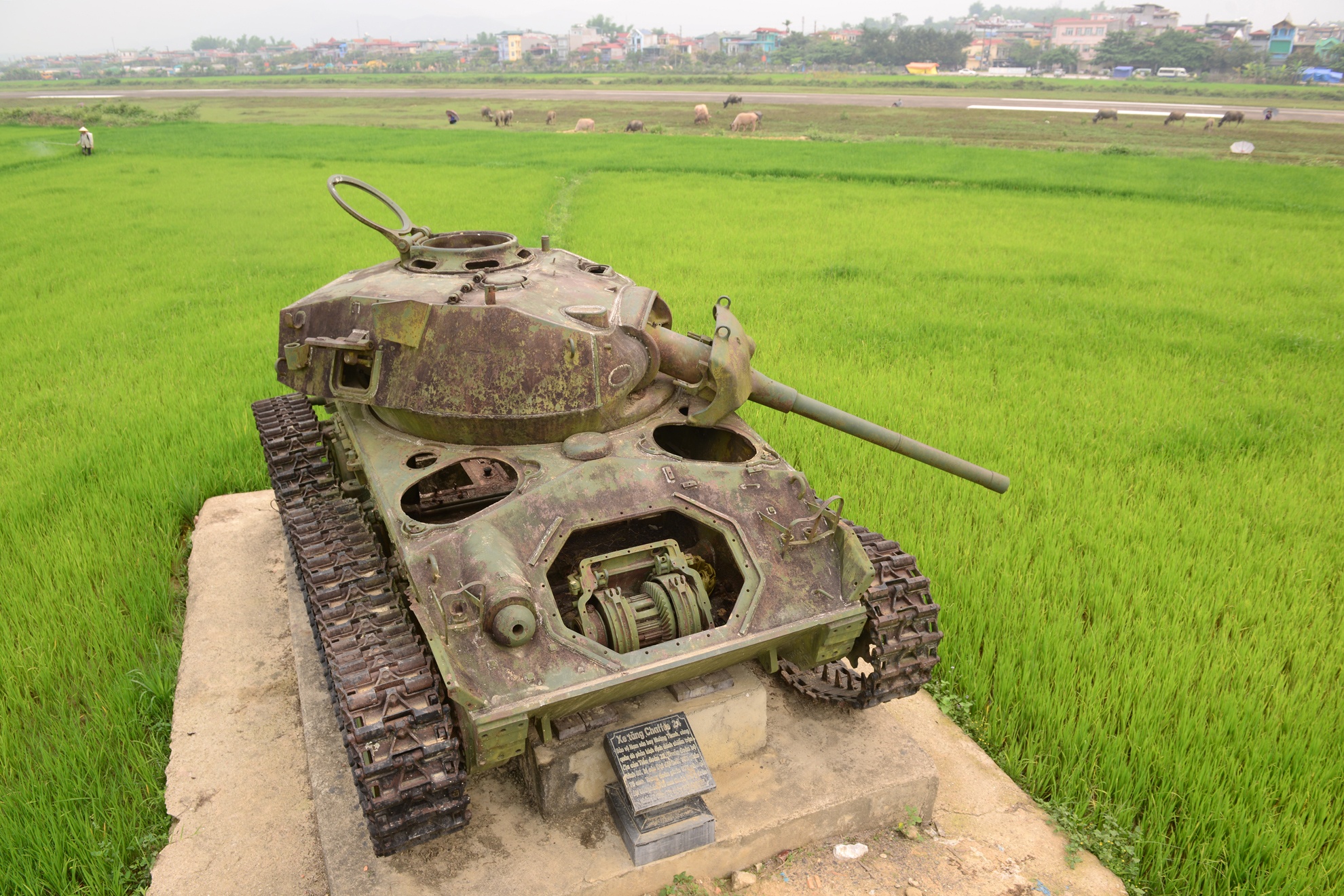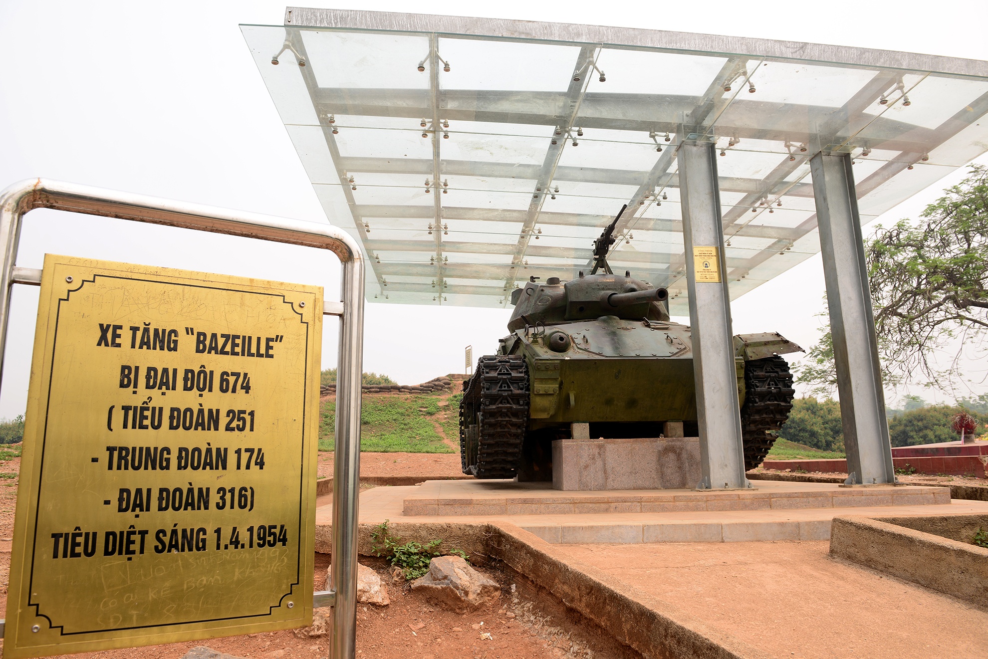 Xe tăng của Pháp bị tiêu diệt trên đồi A1 trong chiến dịch Điện Biên Phủ sáng 1/4/1954 năm xưa nay đã được dựng mái khung thép kết hợp kính cường lực để che mưa nắng.