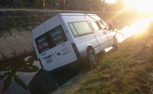| Chiếc xe 16 chỗ lao xuống kênh sông Nông Giang (Nghệ An) rạng sáng ngày 30/11. |