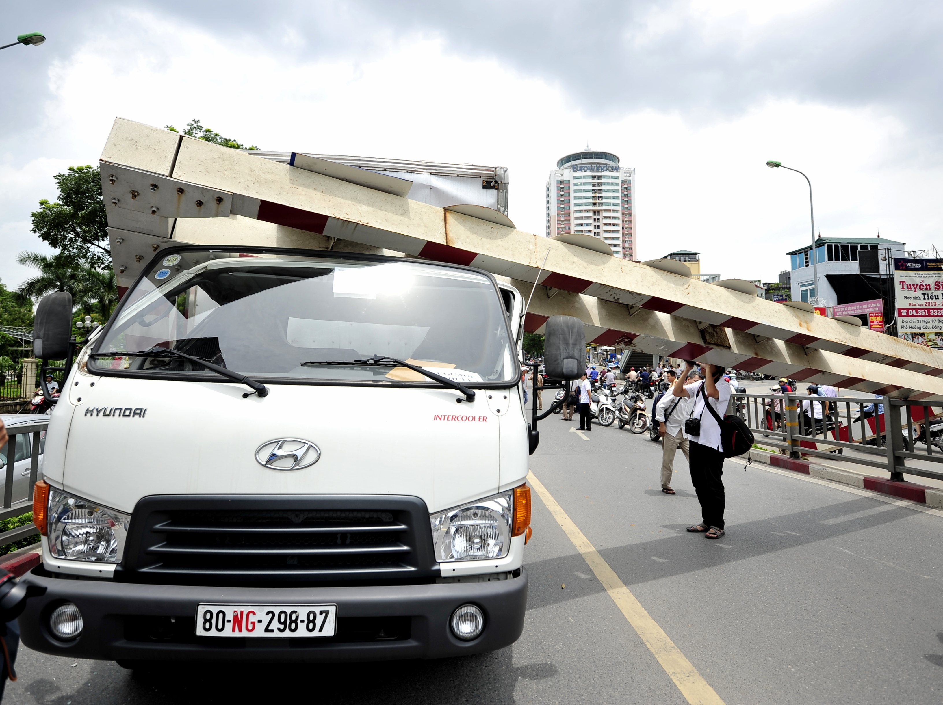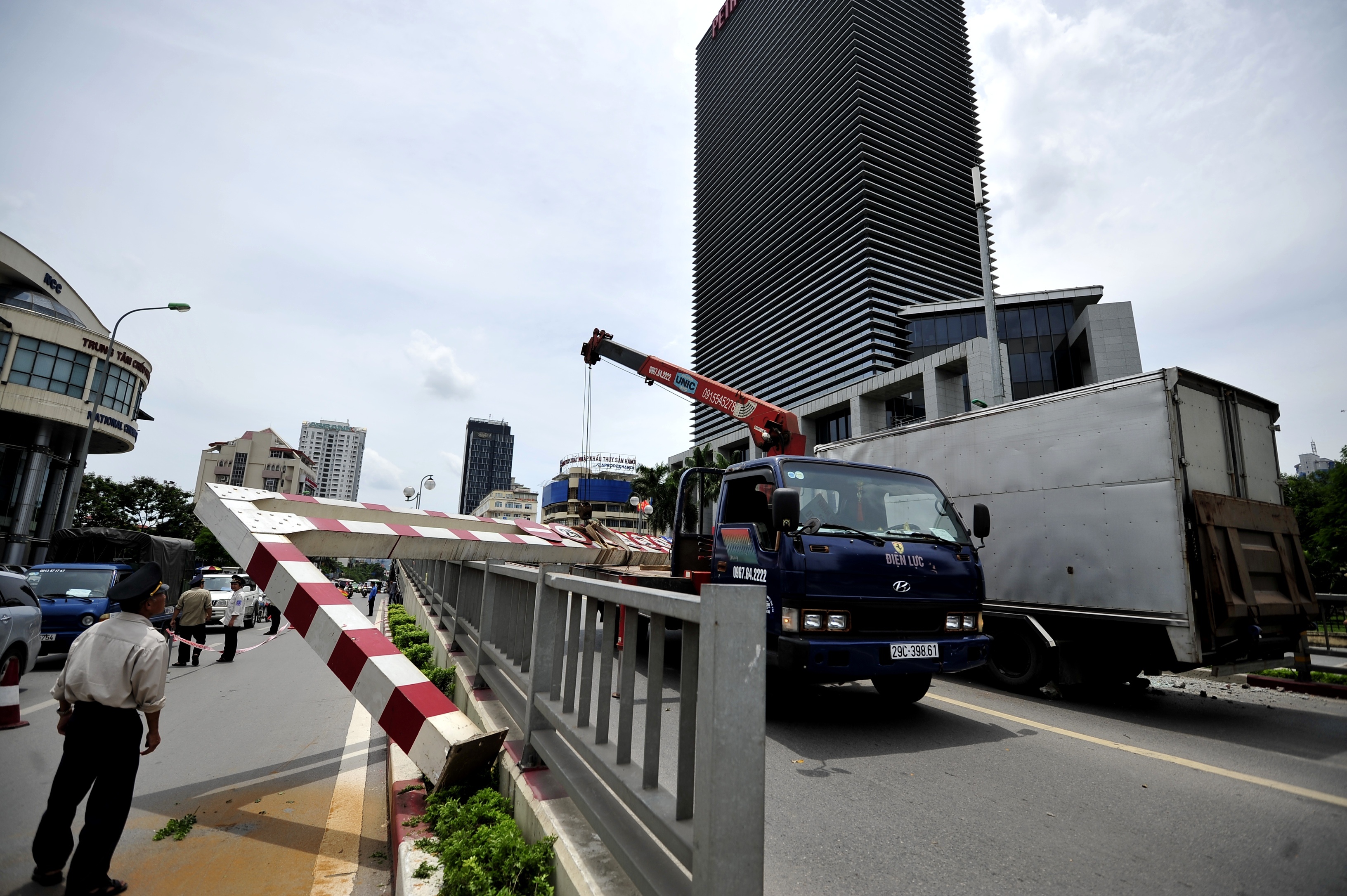 Tới 12h trưa cùng ngày, lực lượng cứu hộ đã tới cầu thanh chắn ra và đưa xe gặp nạn về cơ quan chức năng. Trước đó, 9h30 ngày 14/3, tại cầu vượt nhẹ phố Tây Sơn (Đống Đa, Hà Nội), xe tải cẩu biển xanh có chiều cao vượt mức cho phép đã húc đổ thanh chắn cầu vượt, gây tai nạn cho một người đi xe máy.